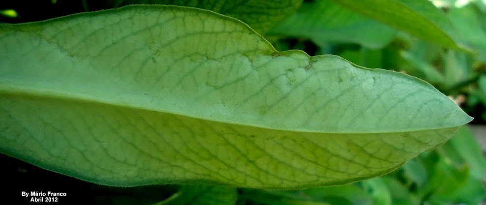 FOLHAS: De coloração verde, suculentas, latescentes , medem